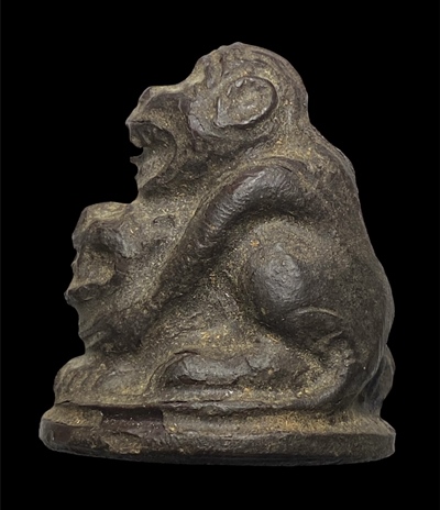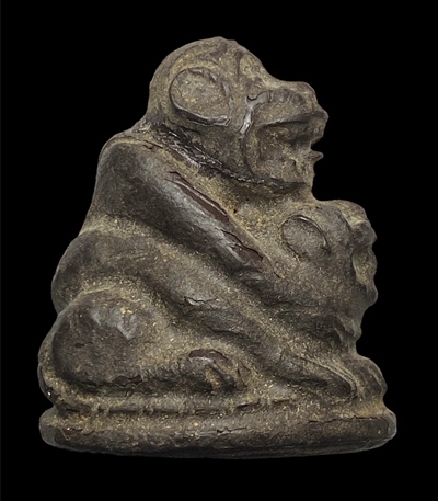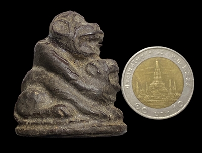 ลิงขี่เสือ เนื้อเหมือนเนื้อผงคลุกรัก ไม่ทราบเกจิ เก่าพอมีอายุตัวใหญ่กว่าเหรียญ10บาท