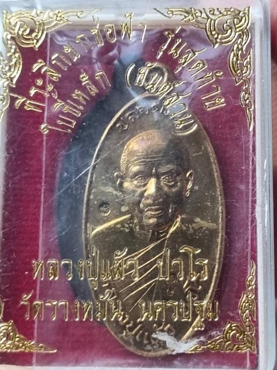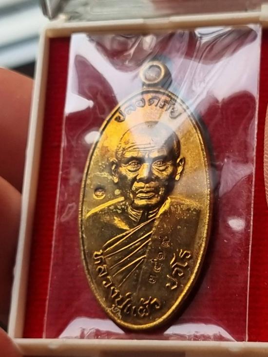 เหรียญใบขี้เหล็ก พิมพ์ใหญ่ ปี 56 หลวงปู่แผ้ว วัดรางหมันเนื้อทองฝาบาตร พร้อมกล่องเดิม พระมีรอยราน พิจารณาให้ชอบก่อนเคาะ