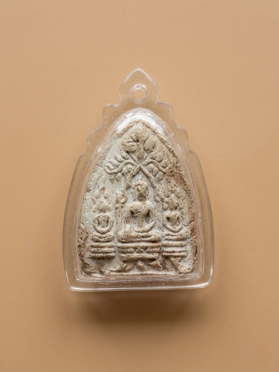 เคาะเเดงเดียว พระเนื้อดินผงไม่ทราบที่มาครับพร้อมเลี่ยมพลาสติก