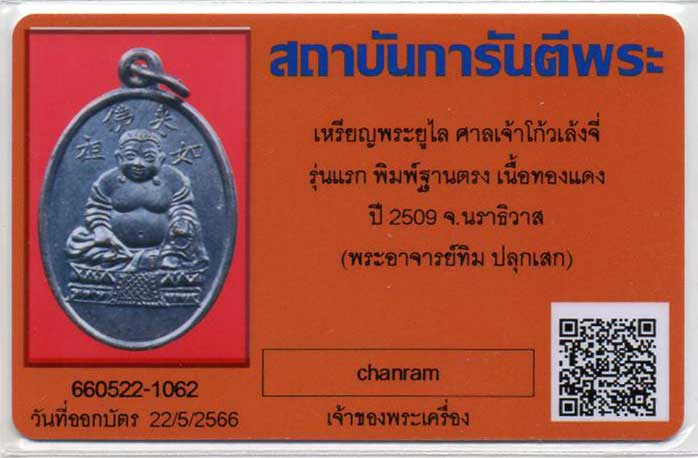 เหรียญพระยูไล รุ่นแรก ปี2509 ศาลเจ้าโก้วเล้งจี่ พิมพ์ฐานตรง