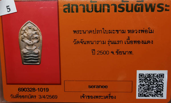 พระนาคปรกใบมะขาม หลวงพ่อโม วัดจันทนาราม รุ่นแรก เนื้อทองแดง ปี 2500 จ.ชัยนาท + บัตรG-pra สภาพสวยเดิมค่ะ
