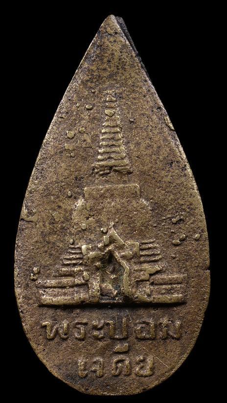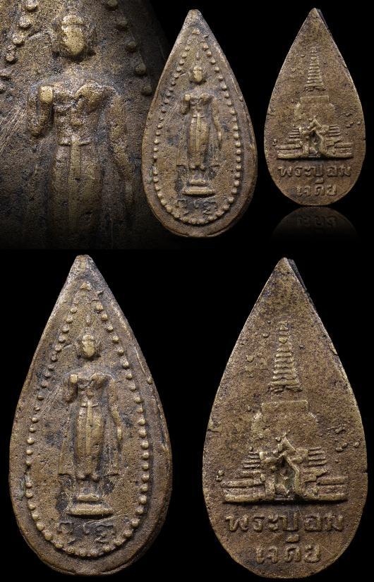 เหรียญหล่อพระร่วงโรจนฤธิ์ เจ้าคุณโชติ พิมพ์ใบมะยมเล็ก เนื้อโลหะผสม พ.ศ. 2487 วัดพระปฐมเจดีย์ราชวรมหาวิหาร จังหวัดนครปฐม
