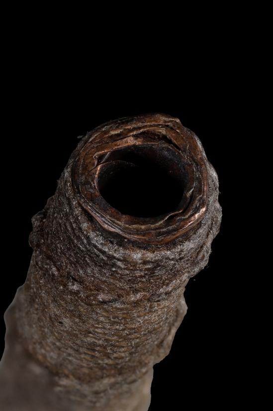 ตะกรุดโทน ยาว 7.5 นิ้ว เนื้อทองแดงถักเชือก ไม่ทราบที่ ไม่ทราบสำนักครับ