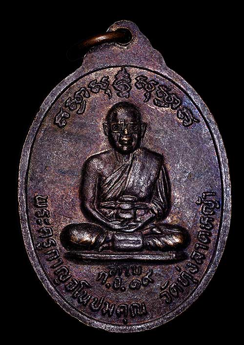 เหรียญรุ่นแรก หลวงพ่อลำใย วัดทุ่งลาดหญ้า จ.กาญจนบุรี สร้าง ปี2519 เนื้อทองแดง หายาก สวยมากครับ