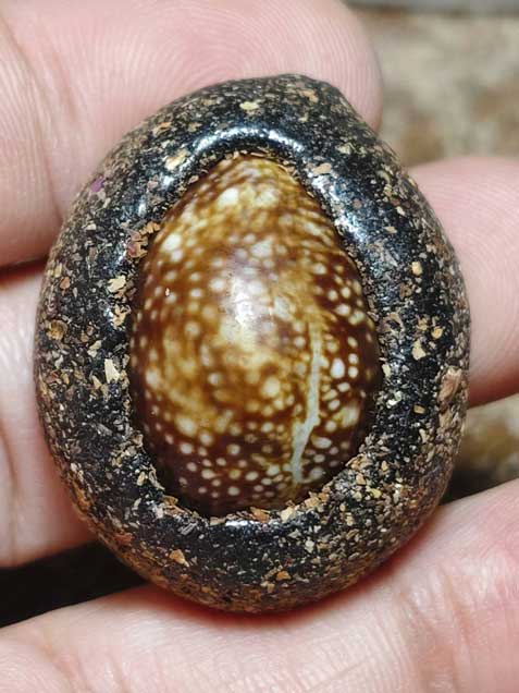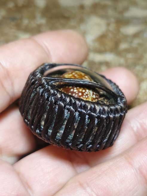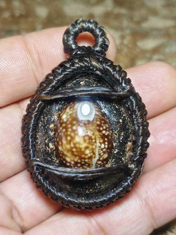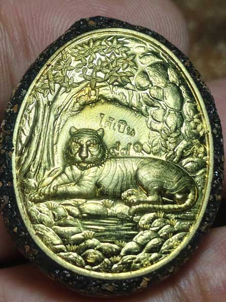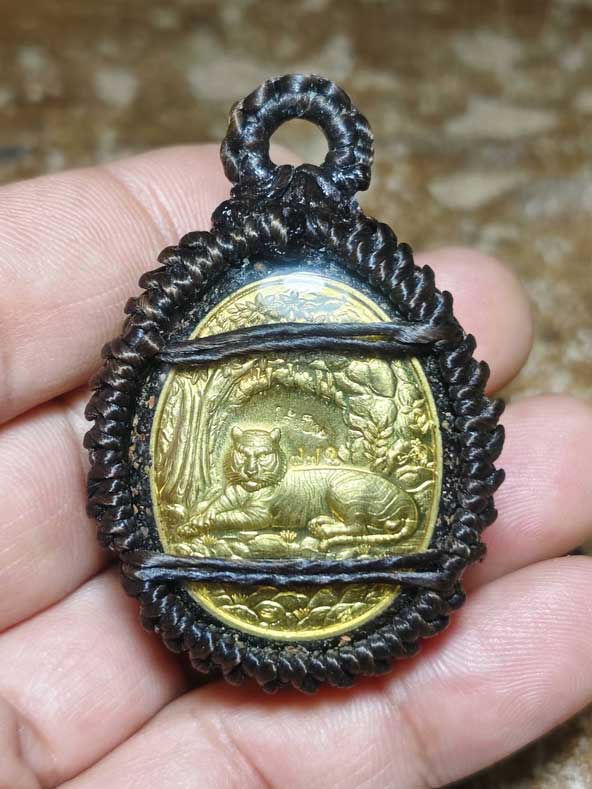 ต่ำกว่าทุน เบี้ยแก้พญาเสือนอนกิน องค์ครู รุ่นแรก พระอาจารย์ประสูติ วัดในเตา พร้อมเลี่ยม พร้อมถักเชือกเทียน หมายเลข 971 ลูกที่ 1
