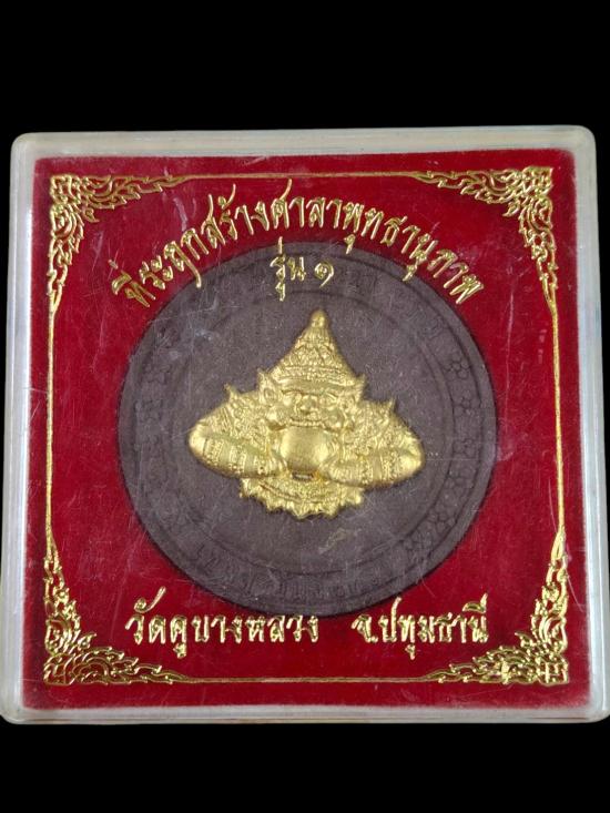 เทพสุริยันจันทรา (พระราหู) สีดำ วัดคูบางหลวง ปทุมธานี ที่ระฦกสร้างศาลาพุทธานุภาพ รุ่น ๑ ขนาด 5.5 ซ.ม. ปิดทอง พร้อมกล่อง
