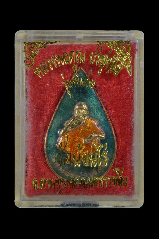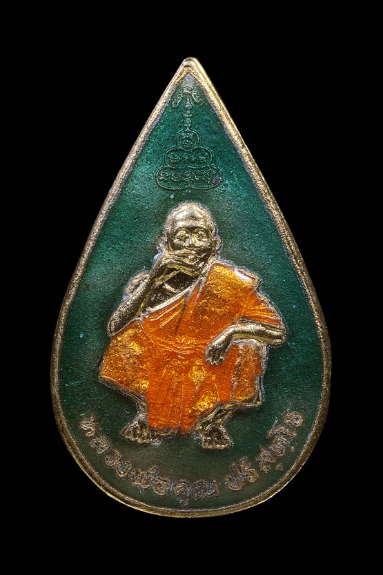 เหรียญหยดน้ำหลังเข็มกลัด รุ่น พิเศษ ( เนื้อกะไหล่ทองลงยาเขียว ) พ.ศ.2536 ( กล่องเดิม )