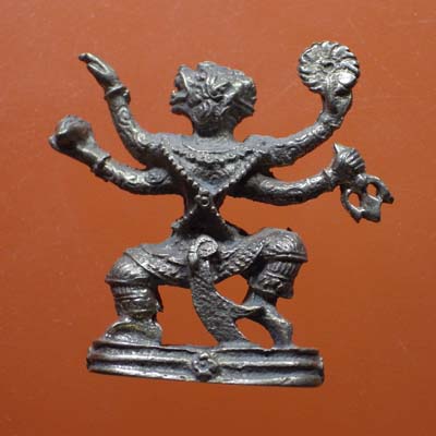 หนุมานหล่อโบราณ 4 กร เนื้ออัลปาก้า หลวงพ่อแล วัดพระทรง จ.เพชรบุรี ปี 2521....B4 (67.7.6