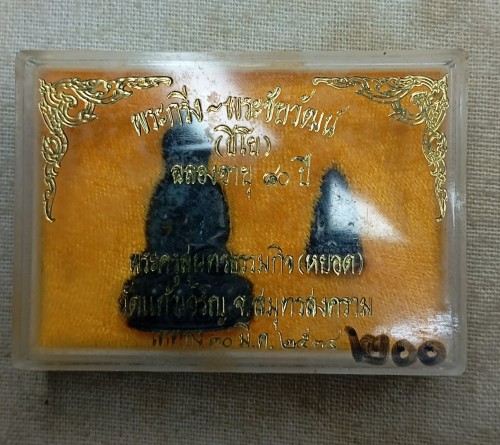 พระกริ่ง-พระชัยวัฒน์ (ปิโย) หลวงพ่อหยอด วัดแก้วเจริญ พร้อมกล่องเดิมๆ