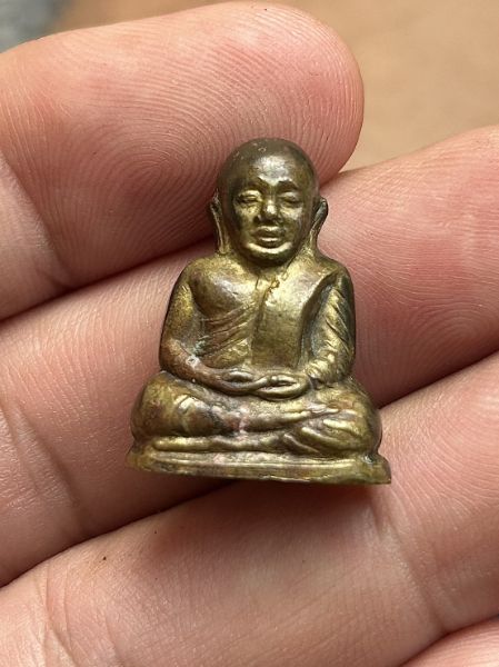 รูปเหมือนปั๊มหลวงพ่อเงิน บางคลาน เนื้อทองเหลือง พิมพ์มือจุด(ฐานกว้างนิยม)ออกวัดมูลเหล็ก ปี 2515