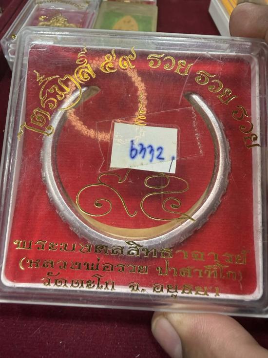 ชื่อพระเครื่อง กำไลหลวงพ่อรวย วัดตะโก อยุธยา รุ่น ไตรมาส59 เนื้อเงิน ขนาด2.5