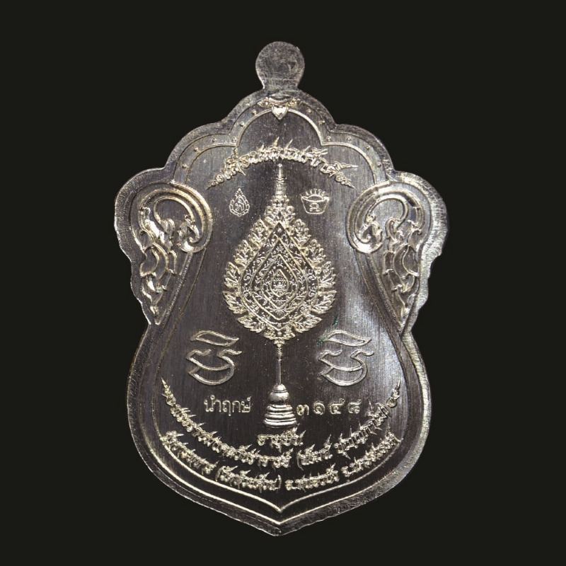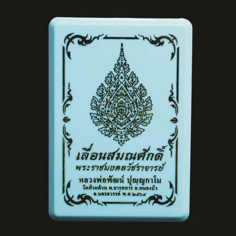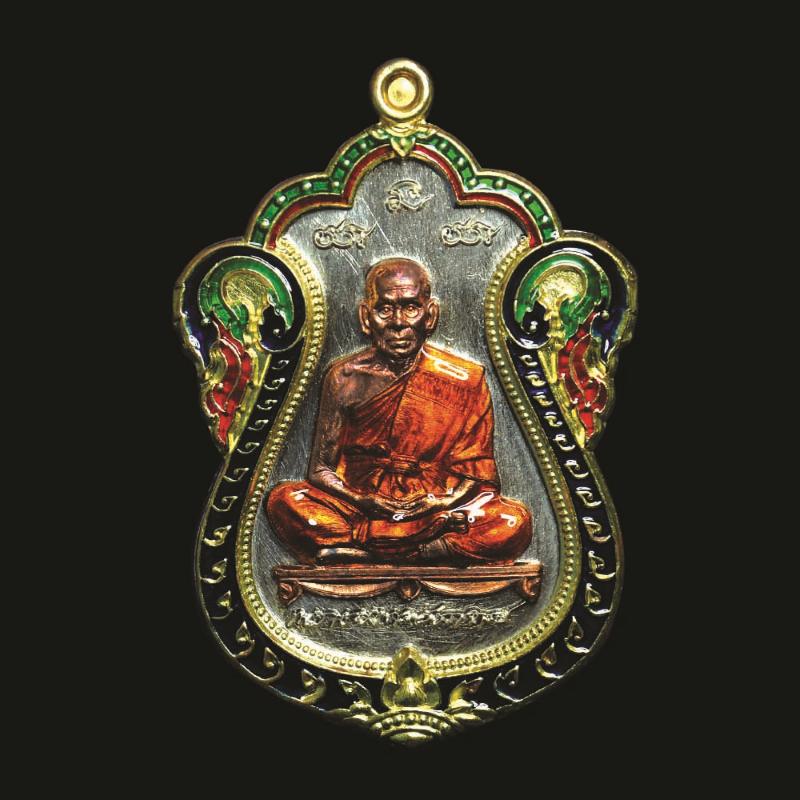เหรียญเลื่อนสมณศักดิ์ หลวงพ่อพัฒน์ วัดห้วยด้วน รายการปะฉลุ เนื้ออัลปาก้า กระหนกทองเหลืองลงยา หน้ากากทองแดงลงยาจีวร ตอกนำฤกษ์