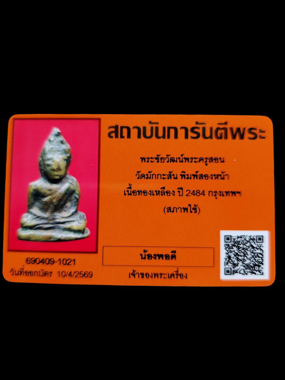พระชัยวัฒน์พระครูสอน พิมพ์สองหน้า 2484 มาพร้อมบัตรรับรอง