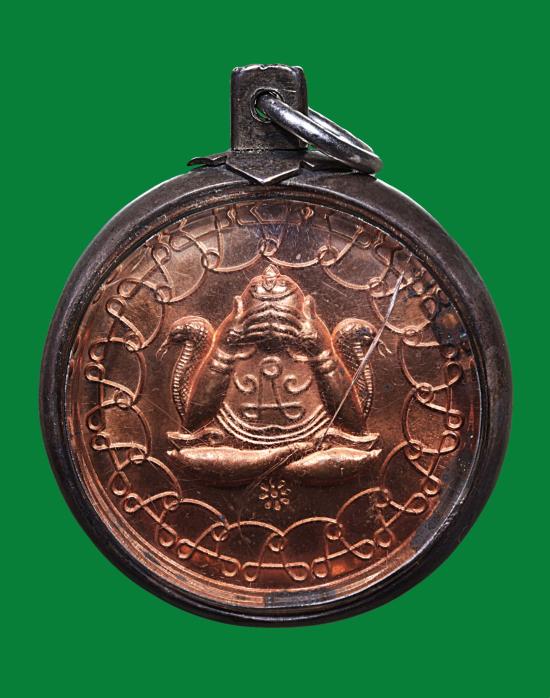 เหรียญพระปิดตา พังพะกาฬ รุ่นบูรณะเจดัย์ราย 45 เลี่ยมเงินผ่าหวาย ผิวไฟสวยเดิมๆ