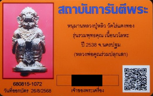 ชนวนหนุมานหลวงปู่ทิม วัดละหารไร่