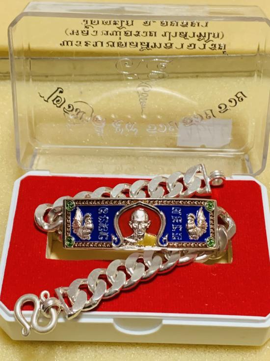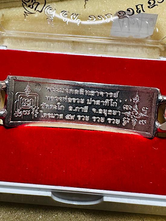 เคาะเดียวแดง เลสข้อมือขนาด4 ฿ หลวงพ่อรวย วัดตะโก รุ่นไตรมาส5995 เนื้อเงินลงยาป้ายแเดงนอนกล่อง เลขโค้ด4646