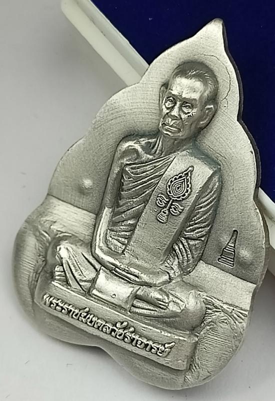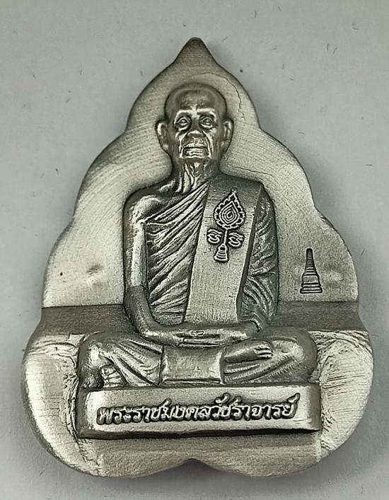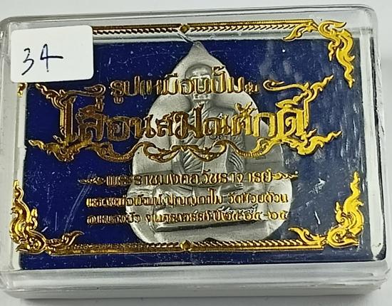 รูปเหมือนปั้มใบโพธิ์ "เลื่อนสมณศักดิ์" หลวงพ่อพัฒน์ วัดห้วยด้วน เนื้อเงินซาติน เบอร์ 34 พร้อมกล่องเดิมครับ