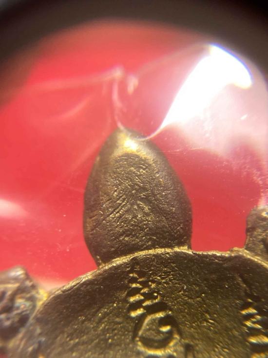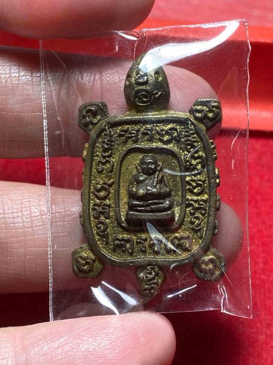เคาะเดียวแดง เต่าหล่อโบราณหลวงปู่หลิว 2536 เนื้อทองฝาบาตร |
