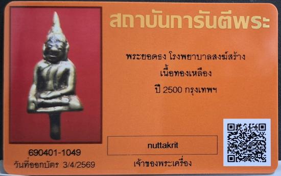 พระยอดธงโรงพยาบาลสงฆ์ ปี 2500 กรุงเทพฯ มีเดือย พิธีใหญ่มาก พร้อมบัตรรับรอง