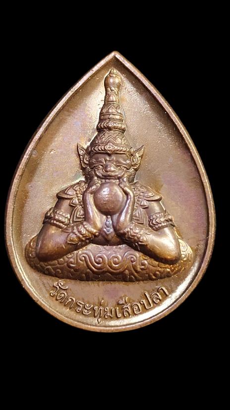 **100.** เหรียญพระราหูอมจันทร์ หลังดอกบัว ตัวหนังสือจีน วัดกระทุ่มเสือปลา สวยๆครับ
