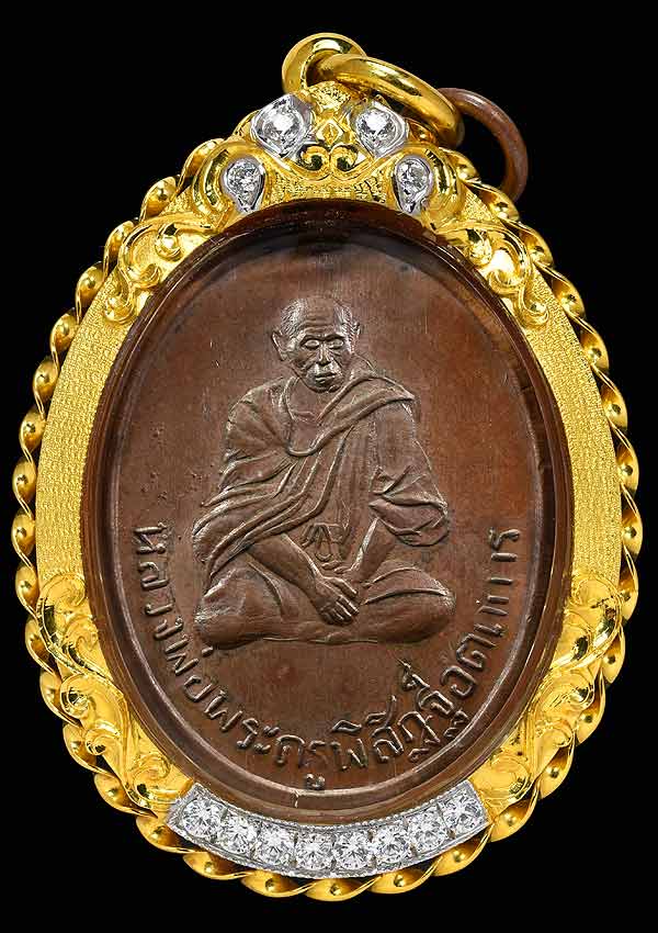 เหรียญพัดยศหลังยันต์ห้า(นะโมพุทธายะ) พ่อท่านคล้าย วัดสวนขัน ปี 2498 นับเป็นพระเครื่องยุคแรกๆ เหรียญรุ่นพัดยศ (วัดสุทัศน์) หลังยันต์ห้า เนื้อทองแดง เลี่ยมทองหนา