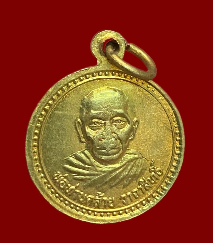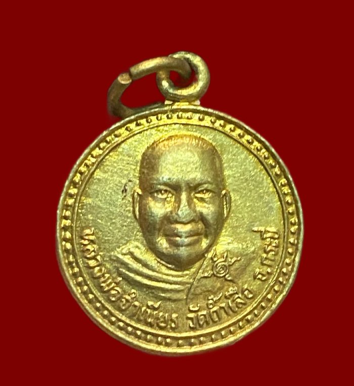 เหรียญกลมเล็ก หลวงพ่อจำเนียร หลังพ่อท่านคล้าย วัดถ้ำเสือ จ.กระบี่ เนื้อกะไหล่ทอง