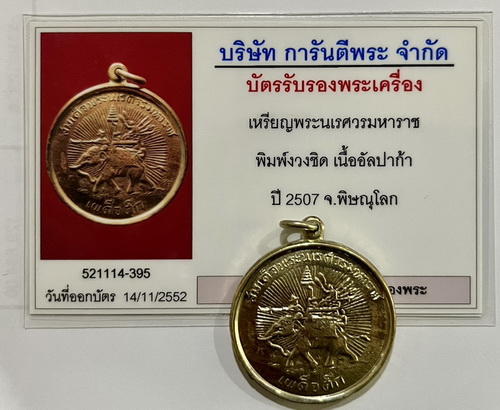 เหรียญพระนเรศวรเผด็จศึกปี 2507"สะท้านไตรภพเผด็จศึก พิธีใหญ่ เนื้ออัลปาก้า สุดยอดมหาอำนาจเยี่ยมเมตตาโชคลาภยอด เหรียญเผด็จศึก ปี๐๗ ชื่อแห่งชัยชนะไม่ว่าจะเผชิญกับอะไรทุกสิ่งทุกอย่าง ถ้าคุณศรัทธาในองค์สมเด็จพระนเรศวรมหาราช(องค์ดำ) "เหรียญนี้จะไม่มีคำว่าพ่ายแพ้"เหรียญนเรศวรเผด็จศึก และ ประกาศอิสรภาพ เป็นเหรียญที่ปลุกเสกในพิธีเดียวกันกับพระกริ่งนเรศวรรุ่นแรก 2507 ประกอบพิธีพุทธาภิเษกเททอง ณ มณฑลพิธีหน้าวิหารที่ประดิษฐานพระบรมรูปสมเด็จพระนเรศวรมหาราชภายในวัดพระศรีรัตนมหาธาตุหลวงพ่อพระพุทธชินราชพิษณุโลก เมื่อวันที่ 19 พ.ย.2507 ตรงกับวันขึ้น 15 ค่ำ เดือน 12 ปีมะโรง จุลศักราช 1326 โดยมีพระเดชพระคุณท่านเจ้าประคุณสมเด็จพระอริยวงญศาคตญาณสมเด็จพระสังฆราช (ปุณณสิริมหาเถร ปุ่น ปธ.) วัดพระเชตุพนวิมลมังคลาราม เมื่อครั้งยังดำรงสมณศักดิ์ที่สมเด็จพระวันรัตเป็นประธาน พระอาจารย์ไสว สุมโน วัดราชนัดดาเป็นเจ้าพิธี พระคณาจารย์ร่วมกันปลุกเสกในสมัยนั้น อาทิ