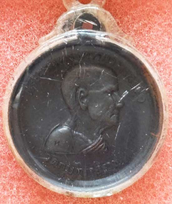 เหรียญหลวงปู่เทียม วัดกษัตราธิราซ เนื้อทองแดง ปี 2518 จ.พระนครศรีอยุธยา (เลี่ยมกรอบกันนํ้าพร้อมบัตรรับรองฯ)
