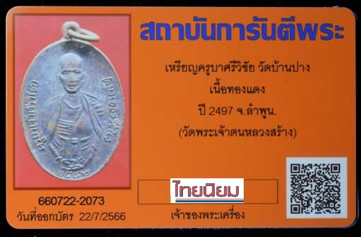 เหรียญครูบาเจ้าศรีวิชัย วัดบ้านปาง ปี2497 (บล๊อคตากลม วงเดือน นิยม) วัดพระเจ้าตนหลวงสร้าง เหรียญยุคเก่าแดนล้านนา สวยเดิม + บัตรรับรอง G-PRA