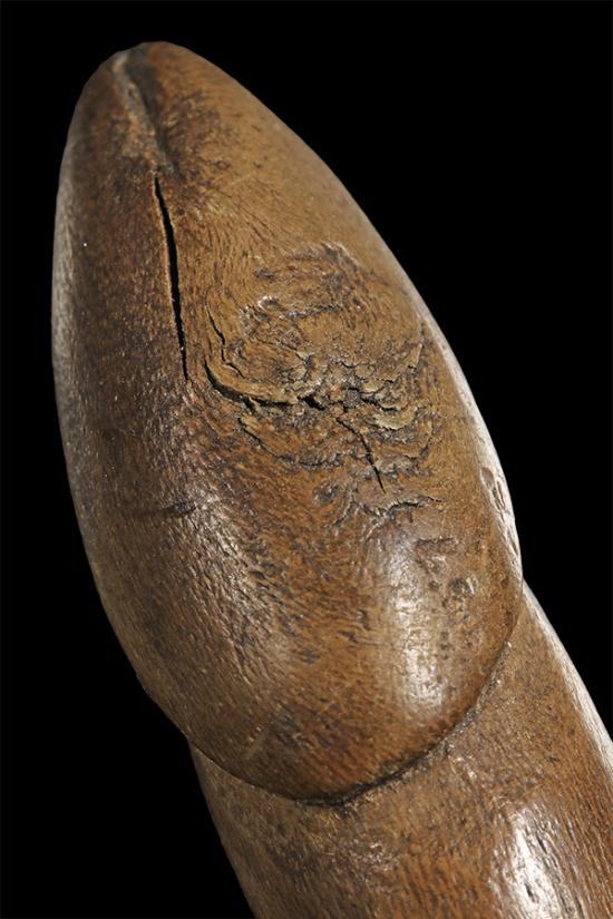 110 / ปลัดขลิกหัวจิ้งจก ไม่ทราบที่ เก่ามีอายุเนื้อไม้แห้งสนิท ยาว 3 นิ้ว กลมเท่านิ้วก้อยครับ |