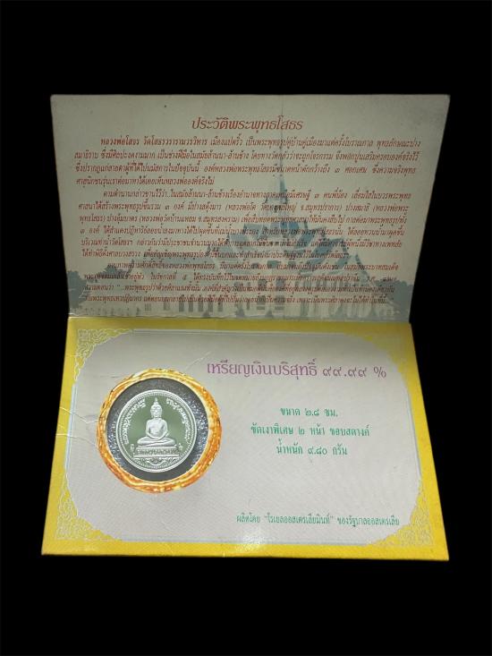 เหรียญเงินหลวงพ่อโสธร เนื้อเงินบริสุทธิ์ 99% หนัก 9.8 กรัม พร้อมใบคาถา (สภาพสวยไม่ผ่านการใช้)