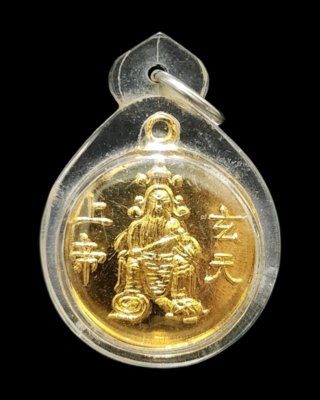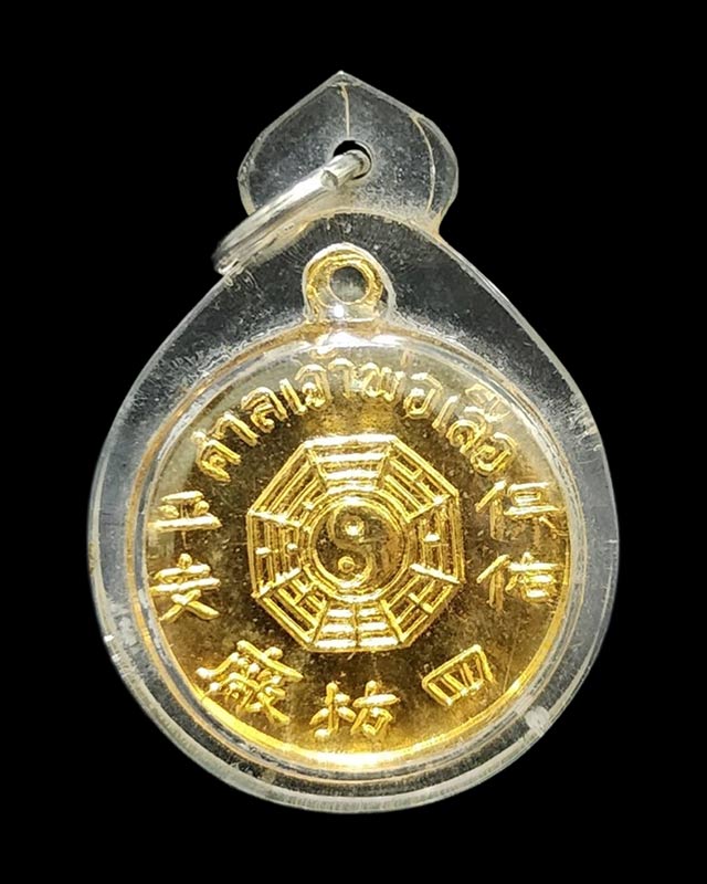 เหรียญกลมศาลเจ้าพ่อเสือ เสาชิงช้า กทม ยุคต้น เนื้อกะไหล่ทอง เลี่ยมพลาสติก |