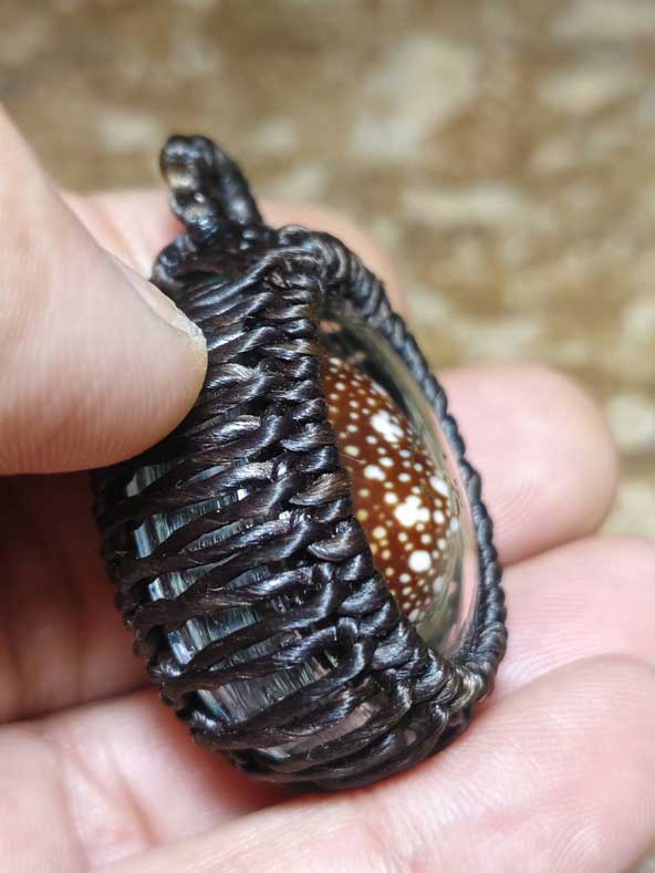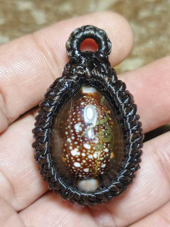 เบี้ยแก้ มหามงคล ฝังตะกรุด ปี-2568 รุ่นพุทธาจินดามณี บรรจุผงยาวาสนาจินดามณี และจีวร พ่อท่านมุ่ย วัดป่าระกำเหนือ พร้อมเลี่ยมกันน้ำถักเชือก ลูกที่ 1