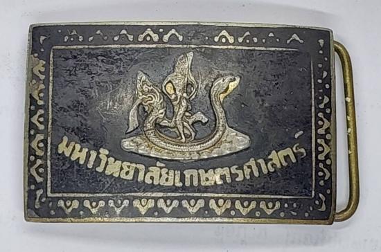 **วัดใจ**หัวเข็มขัด ม.เกษตรศาสตร์ เนื้ออัลปาก้าลงถม ตรงกลางเป็นเงิน
