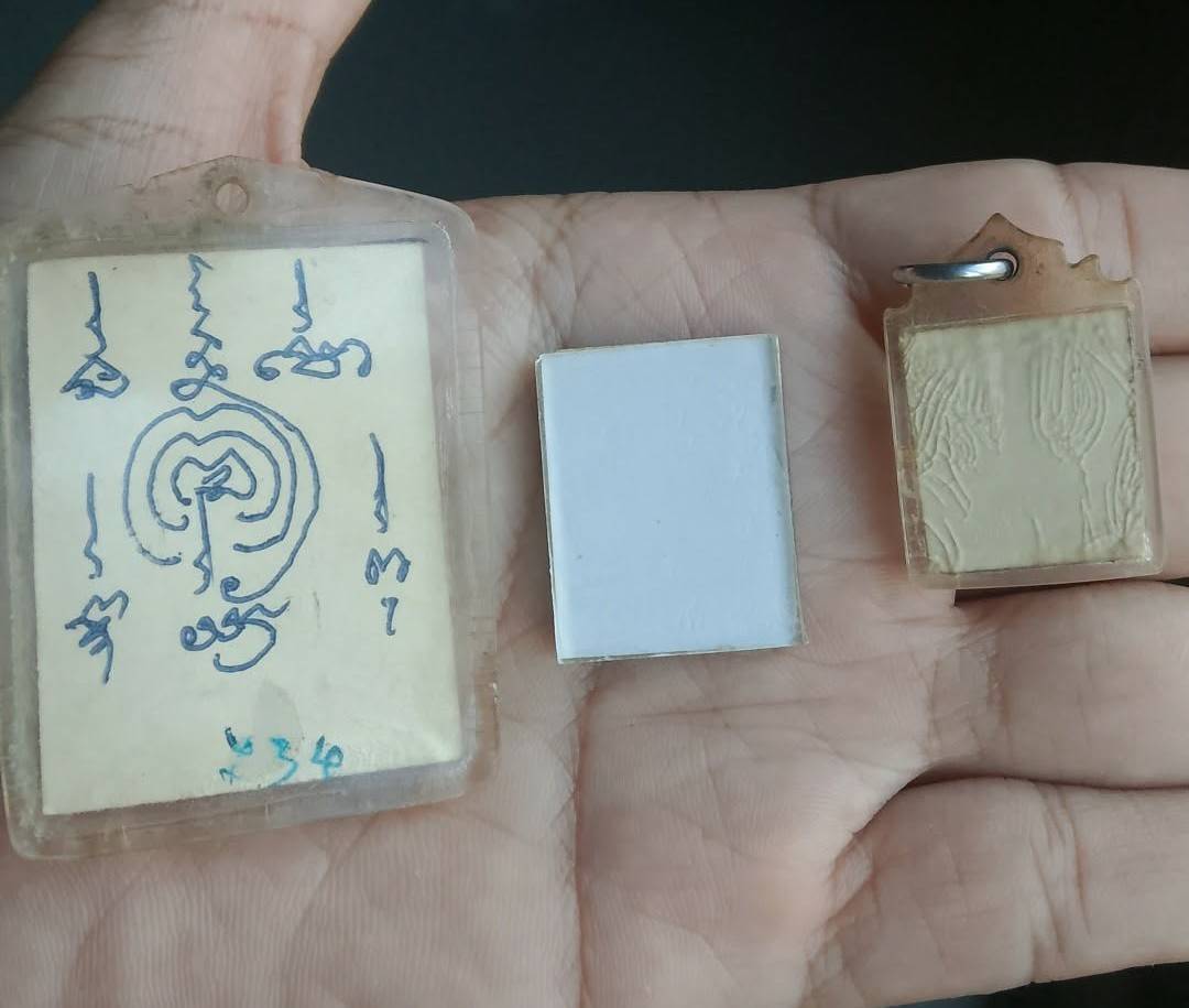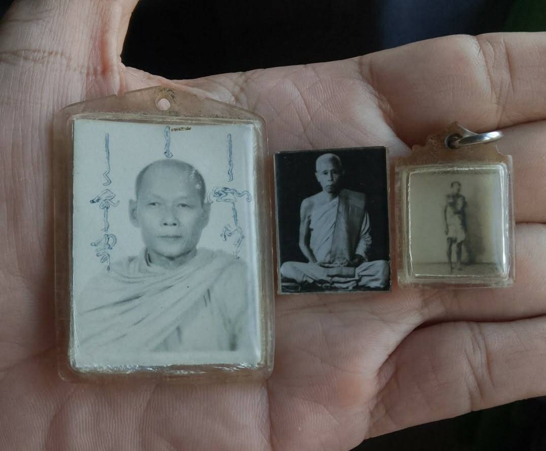รูปถ่ายพระเกจิ 3ใบ โคตรคลาสสิค บางใบมีจาร เลี่ยมพลาสติกเก่า