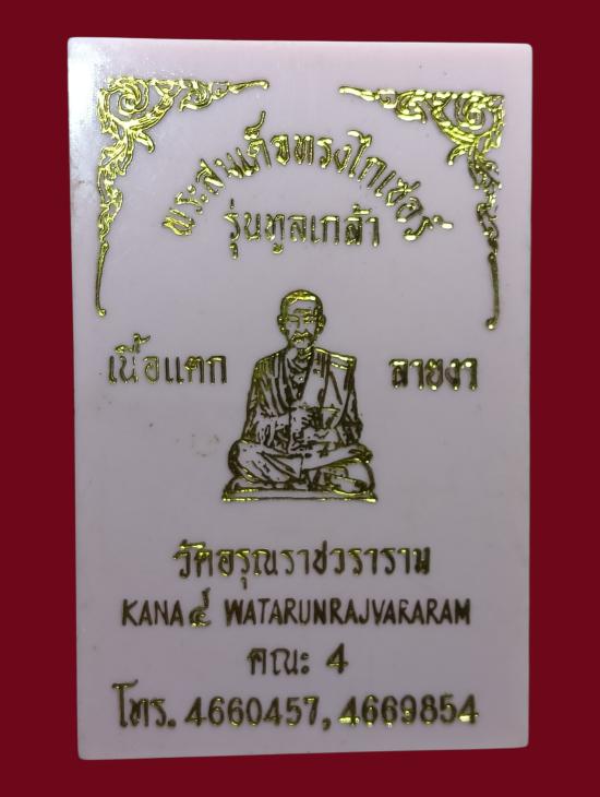 พระสมเด็จทรงไกเซอร์ รุ่นทูลเกล้า วัดอรุณราชวราราม ปี 2529 พิมพ์ใหญ่ เนื้อแตกลายงา ฝังพลอย ปั๊มตรายาง กล่องเดิม องค์ที่ 1 สวยครับ |