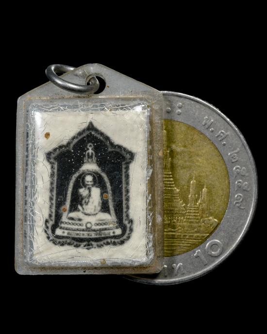 รูปถ่ายขาว-ดำ "กระดาษหนังไก่" หลวงพ่อพรหม วัดช่องแค พิมพ์หลั งยันต์หมึก 3 แถว สภาพสวยเลี่ยมเก่าเดิมๆครับ |