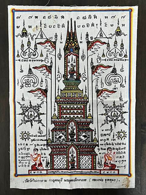 ผ้ายันต์อิติปิโสธงชัยนางกวักคู่ หลวงพ่ออุตตมะ วัดวังก์วิเวการาม