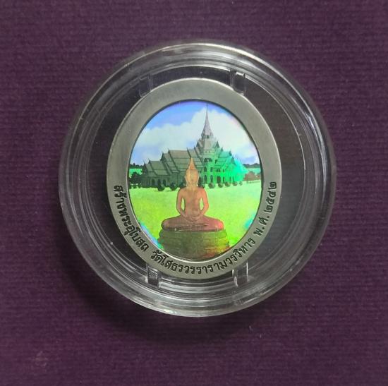 เหรียญสร้างอุโบสถ เนื้อเงินซาติน หลังโฮโลแกรม3มิติ หลวงพ่อโสธร ปี๔๒