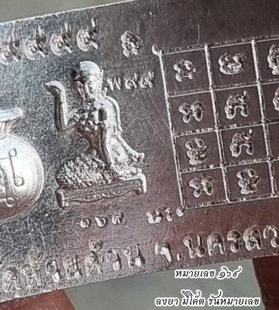 เลสเงินหลวงพ่อพัฒน์ ปุญญกาโม รุ่น รวยรับทรัพย์ ๙๙ วัดห้วยด้วน เนื้อเงินแท้หนัก 4 บาท หมายเลข ๑๖๙