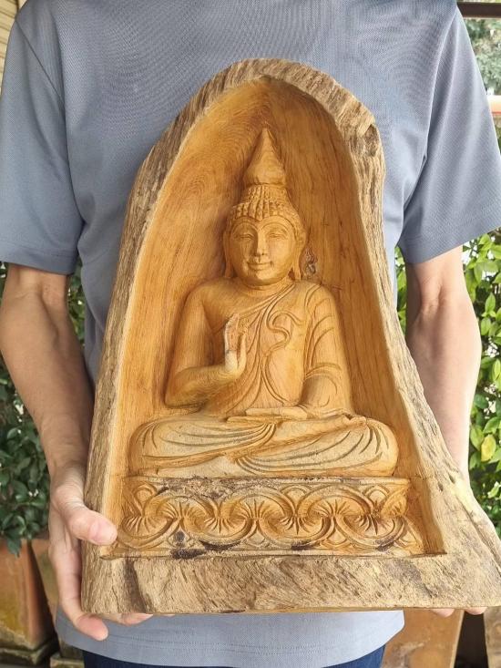 พระปางประทานพร แกะสลักจากแผ่นปีกไม้มงคล ขนาดใหญ่