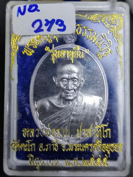 หลวงพ่อรวย วัดตะโก จ.อยุธยา เหรียญรุ่น อายุยืน เพิ่มบารมี ปี55 เนื้อเงิน เลข273