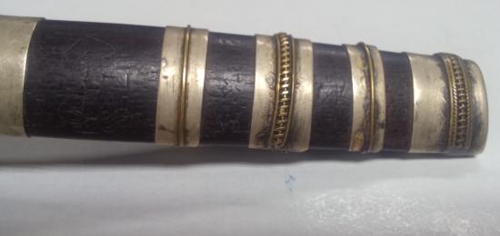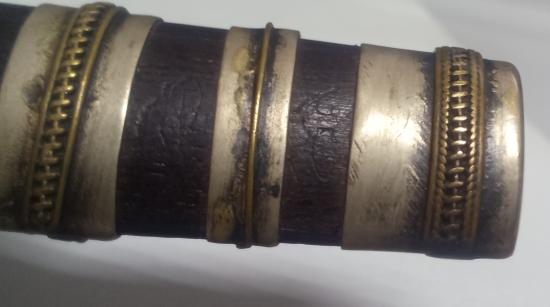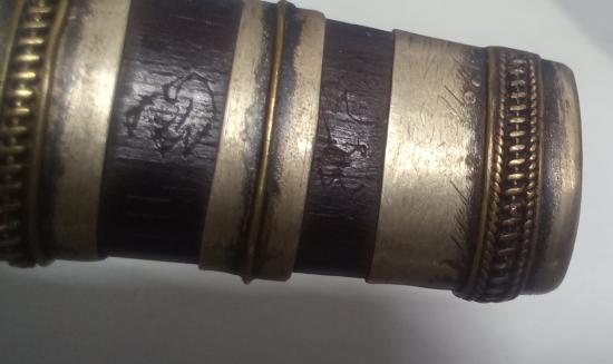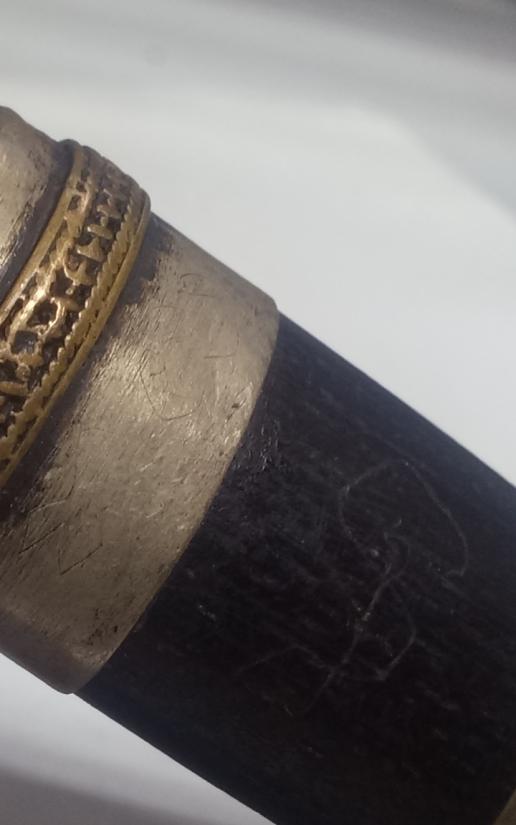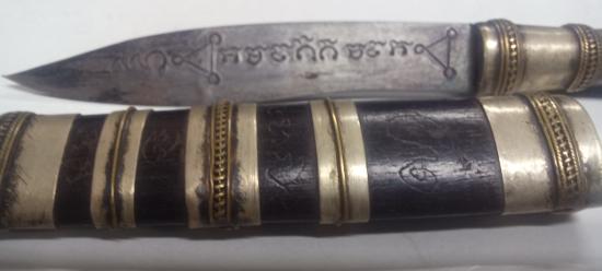 มีดหมอไม่ทราบที่ 5 นิ้ว ด้ามไม้ฝักไม้ มีจารเต็มฝัก เต็มแหมรัดฝัก แหมรัดคอด้าม ไม่ทราบที่