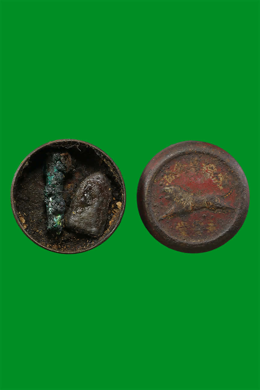สภาพตามรูป ผิวหิ้งเดิมเดิม ตลับยาหม่อง บรรจุพระเนื้อชิน ตะกรุดสาริกา (สุดยอดเรื่องเมตตา มหานิยม โชคลาภ) สุดยอดเรื่องโชคลาภ แคล้วคลาด มหาอุตม์ สร้างน้อย น่ารัก พระดี พิธีดี พระดีน่าเก็บ สภาพเดิม แท้ๆ ราคาไม่แพงครับ สุดยอดเรื่องประสบการณ์