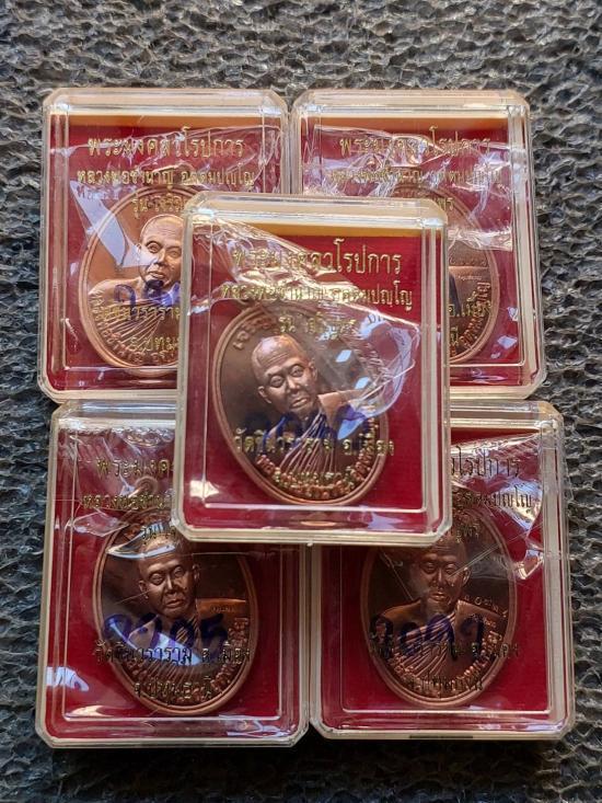 เหรียญเจริญพร ครึ่งองค์ (เนื้อทองแดง) หลวงพ่อชำนาญ วัดชินวรารามวรวิหาร 5 เหรียญ