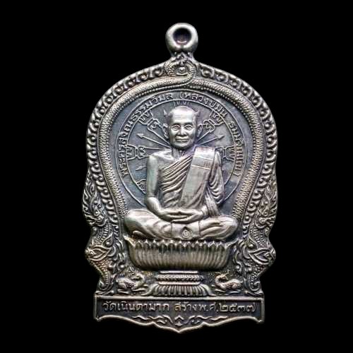 เหรียญหลวงพ่อม่น วัดเนินตามาก จ.ชลบุรี เนื้อเงิน พิมพ์นั่งพาน ปี2537