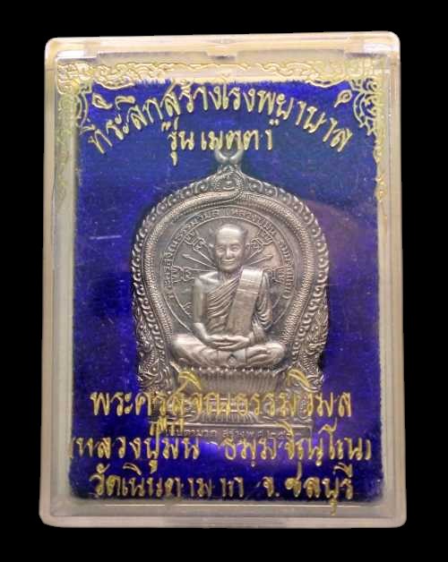 เหรียญหลวงพ่อม่น วัดเนินตามาก จ.ชลบุรี เนื้อเงิน พิมพ์นั่งพาน ปี2537