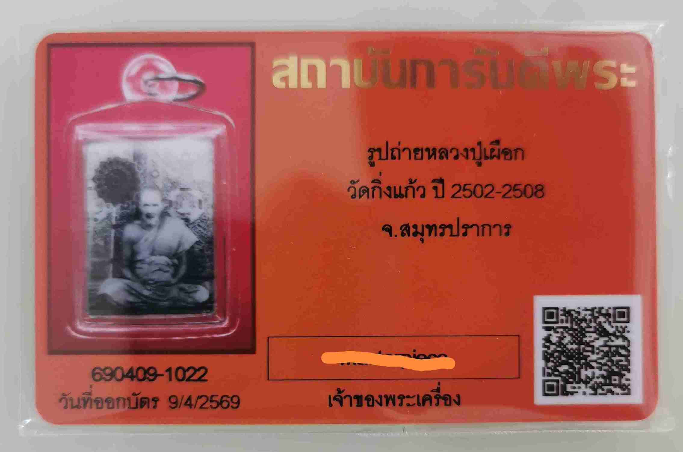 รูปถ่ายหลวงปู่เผือก วัดกิ่งแก้ว ปี 2502-2508 เลี่ยมพร้อม สวยๆ พร้อมบัตรรับรอง