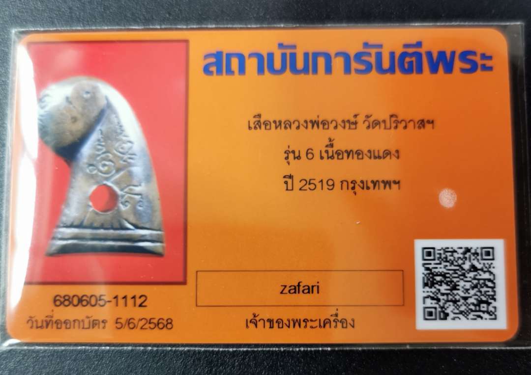 เสือหลวงพ่อวงษ์ วัดปริวาสฯ รุ่น6 ปี 2519 สวยทุกมุมมอง มีหน้ามีตา พร้อมบัตรรับรอง