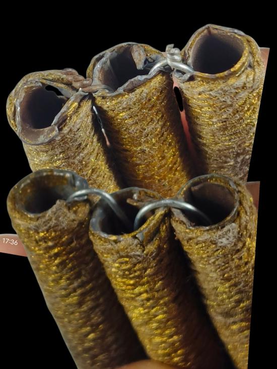 ตะกรุดเนื้อตะกั่วถักเชือก ไม่รู้ที่ 3 ดอก 100 แดงครับ